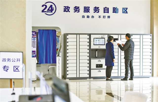 3月9日,江津区白沙镇行政服务中心24小时政务服务自助区,工作人员正在指导前来办事的市民使用智能存取文件柜。