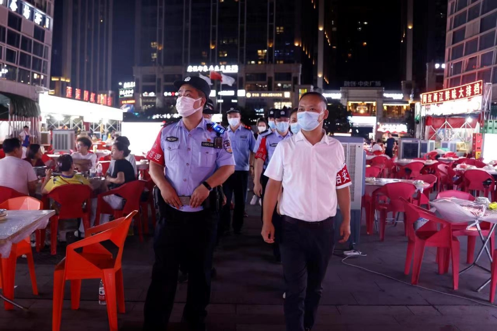 渝北区夏夜治安巡查宣防集中第二次统一行动现场。渝北区警方供图