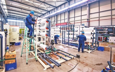 三峰环境垃圾焚烧炉总装基地,工作人员正在作业。郑宇 摄