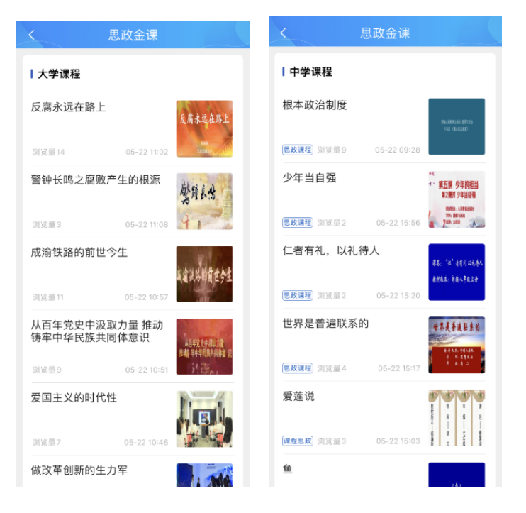 例如,“思政金课”板块包括大、中、小学思政金课以及幼儿园品德启蒙优质活动等,用户可以观看相关金课视频内容;“思政故事”板块展示了“大思政课”建设中涌现出的优秀案例;“思政教育影片”则通过视频展播的形式,对优秀思政教育短片进行推介。