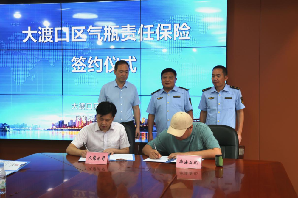 在签约仪式上,重庆华油石化有限公司、重庆玉灵燃气有限公司、重庆朝阳气体有限公司等3家企业,分别与中国人民财产保障股份有限公司重庆市大渡口区支公司签订《气瓶安全生产责任险合作协议》。