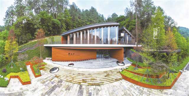 缙云山黛湖之南,一座生态文明教育展示馆静静矗立。不远处的黛湖波光恬静,岸边柳色青青、松荫浓郁。