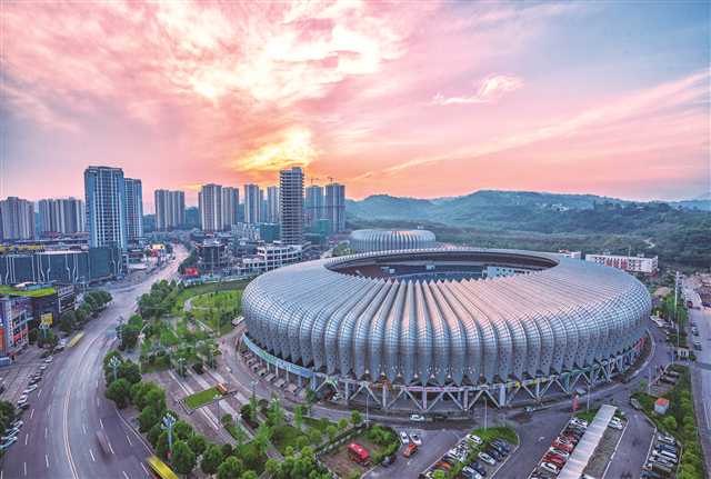 霞光映照下的通惠体育馆