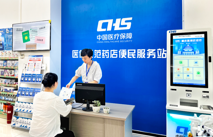 在大渡口区每个医保示范药店便民服务站,都配备一名党员站长开展业务指导,每月开展“医保政策宣讲日”、开设“党员联系驻点办公日”,向群众普及医保知识,协助示范药店办理群众的医保问题。示范药店内还放置了一张医保连心卡,留有参保业务、医疗救助等相关部门联系方式,方便群众电话咨询业务。此外,药店内还张贴了13项下沉镇街业务的“一张办事清单”,注明各项业务办事流程的“一套办事流程”,并配备一台自助终端机,市民可自助办理基本医疗保险临时异地就医备案等33项高频业务。