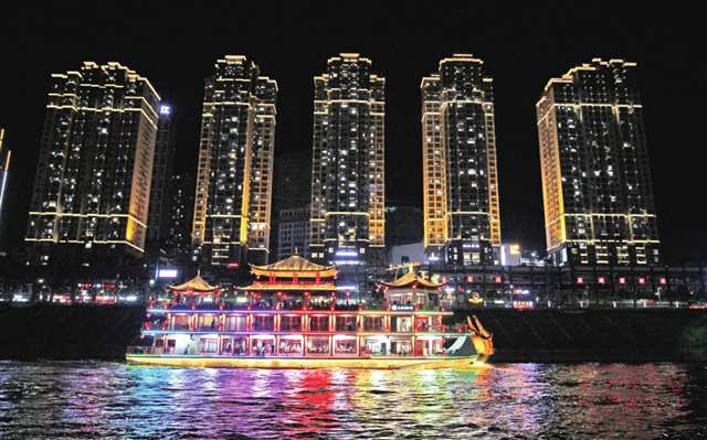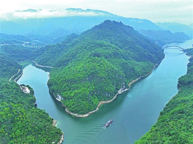 航行在彭水县善感乡乌江水域中的游船,与碧绿的江水、青翠的山峦构成一幅美丽的山水画