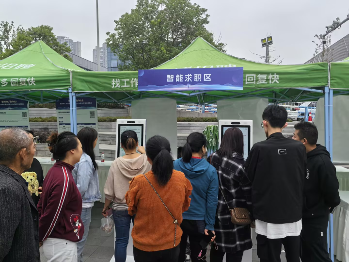 据了解,“就近帮”数字就业平台实现与支付宝的数据互通,合作研发“固定+手持”自助求职一体机,在全区人流量集中的车站、商圈、办事大厅设置固定求职机,24小时提供求职服务,为全区153个村社配发手持式刷脸求职机,入户上门为重点群体提供服务。求职者不用填写任何简历信息,只需确定求职意向后刷脸即可完成岗位选择、简历投递、企业查询、供需对接等全部流程,实现从“人找工作”到“工作找人”的数字变革。
