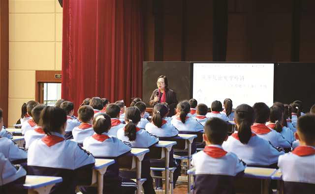 浙江师范大学教授陈琴与秀山县东风路小学四年级学生同上“学思课堂” 摄/朱良龙