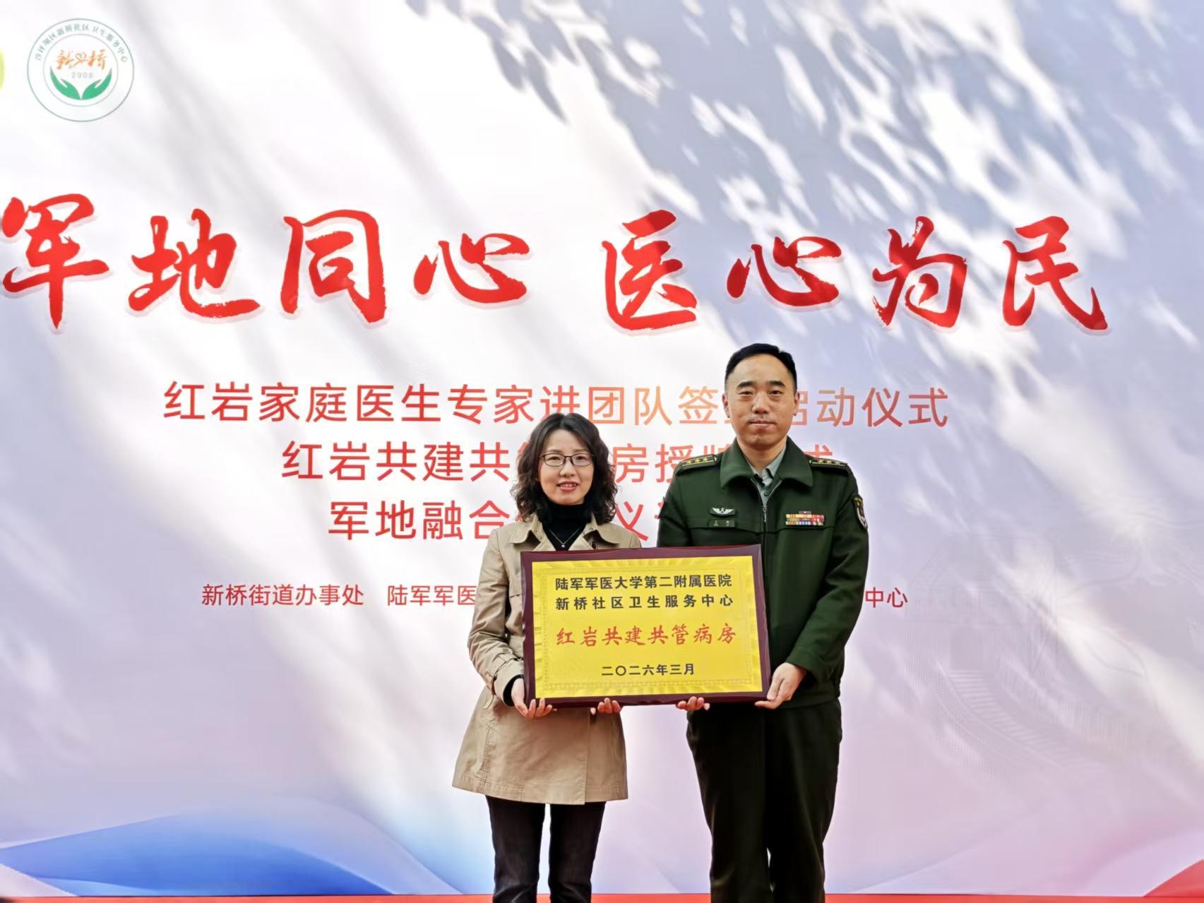 日前,在一场红岩家庭医生专家进团队签约启动仪式、红岩共建共管病房授牌仪式暨军地融合健康义诊活动中,12名陆军军医大学第二附属医院全科医学科专家正式加入新桥社区卫生服务中心“红岩家医”团队,让居民在家门口就能享受到专家坐诊、查房指导、双向转诊、联合会诊、健康义诊等优质、便捷的医疗服务。