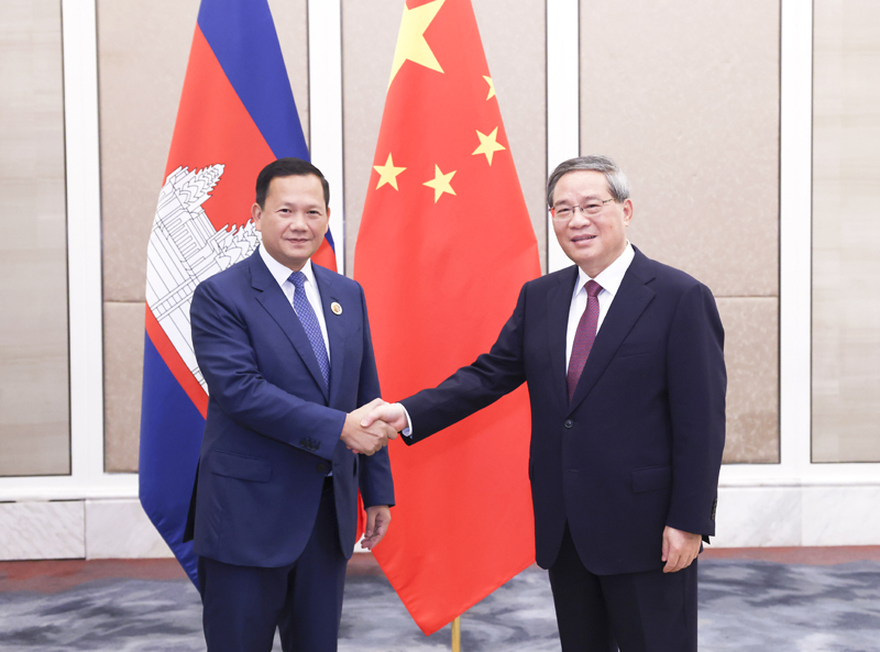 李强表示,不久前,习近平主席对柬埔寨进行历史性访问,同首相先生共同宣布构建新时代全天候中柬命运共同体。中柬关系再次走在构建人类命运共同体前列,两国铁杆友谊进一步深化。中方愿同柬方一道,以落实习近平主席访问成果为主线,密切高层往来,深化政治互信,发挥中柬政府间协调委员会机制作用,扎实推进各领域务实合作,以中柬命运共同体建设的确定性应对外部环境的不确定性,携手促进两国经济发展,维护好双方的共同利益。