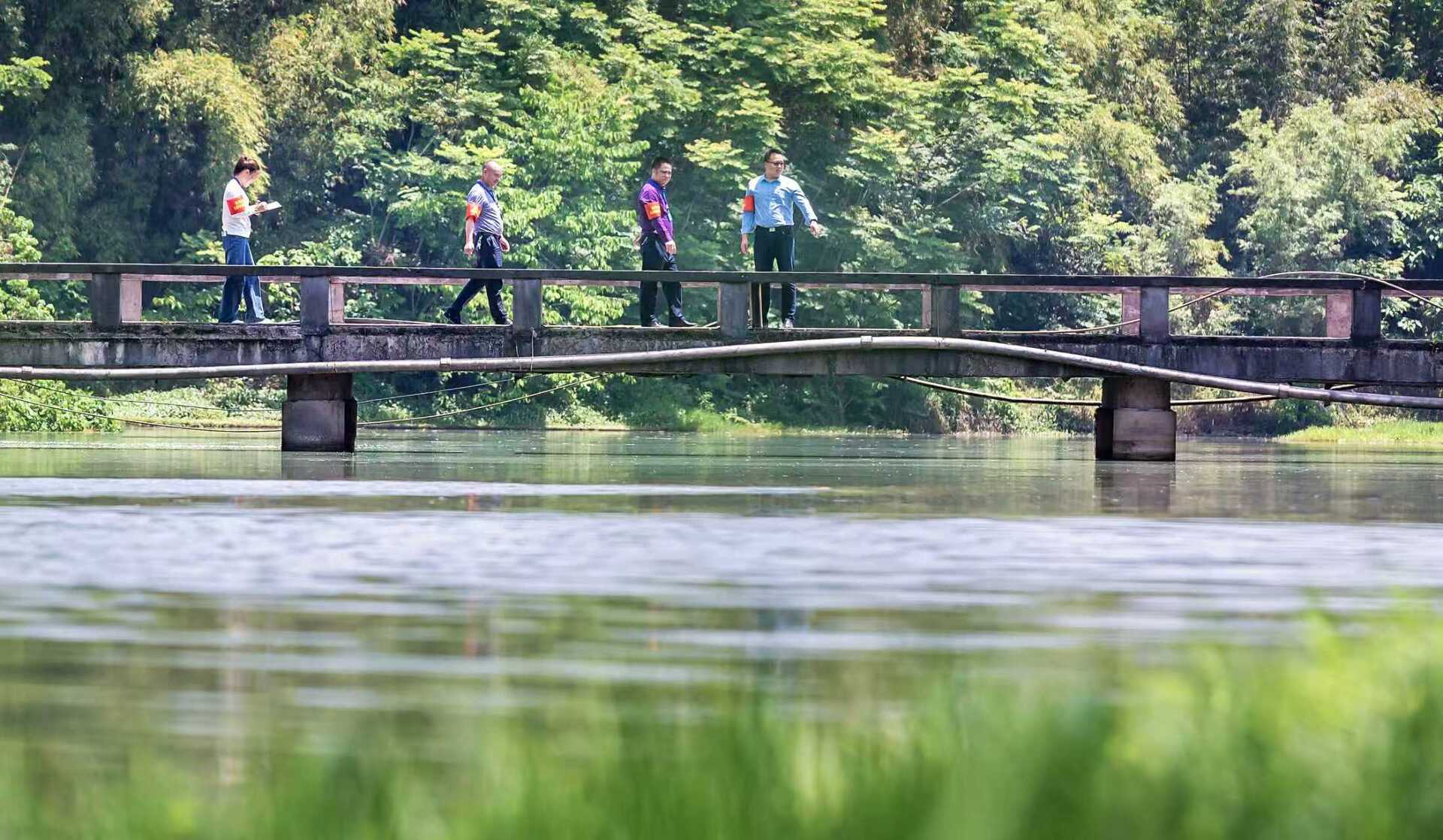 工作人员在花溪河巡河。巴南区融媒体中心供图