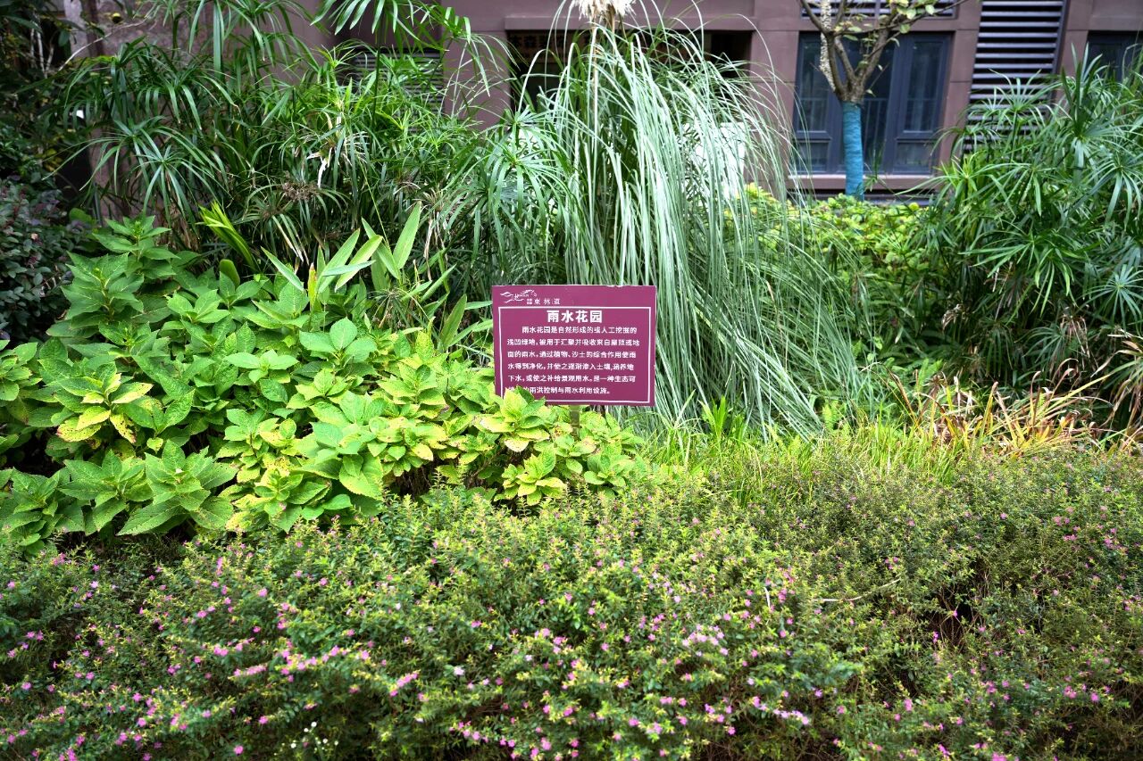 东林道小区将海绵设施功能与景观环境融合,依托雨水花园打造了充满自然野趣的景观小品,雨水花园和透水铺装分布在小区内,雨水不会直接从步道流向管渠,而是先进入雨水花园或透水铺装滞留和渗透,多余的雨水可流入市政管网或调蓄池,可用于物业灌溉等。如此一来,既保证了路面干爽洁净,又让水资源得到了循环利用。