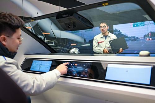 2025年1月13日,位于两江新区的利龙科技产业(集团)有限公司,研发工程师在利龙中宝智能座舱项目对增强现实型抬头显示仪的性能进行调试。(资料图片)记者 张锦辉 摄/视觉重庆
