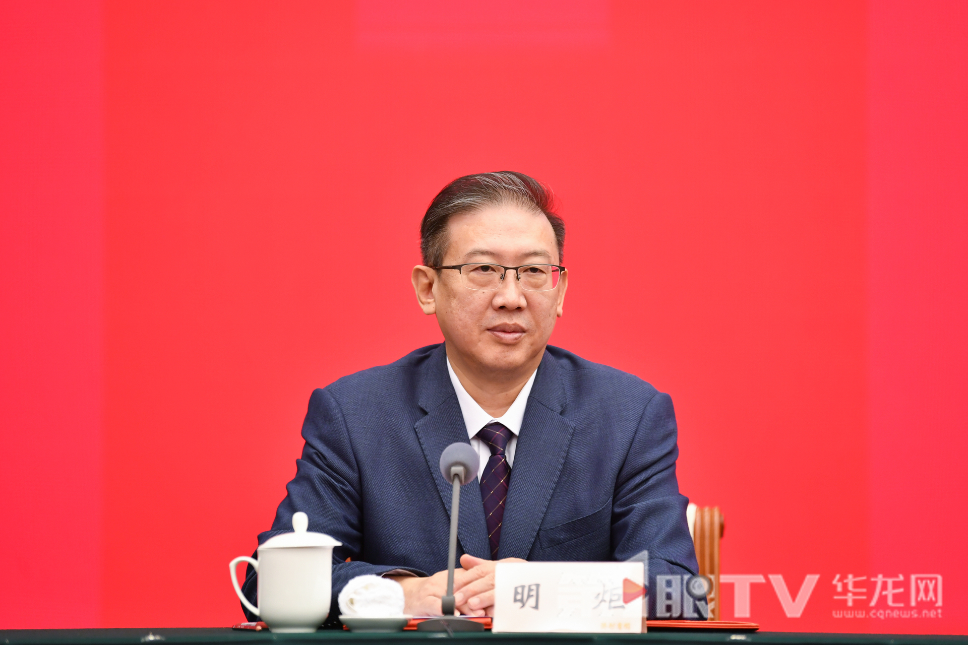 11月25日,中共重庆市委六届八次全会精神解读新闻发布会举行。图为市科技局党委书记、局长明炬回答记者提问。第1眼TV-华龙网记者 李文科、李一鸣 摄