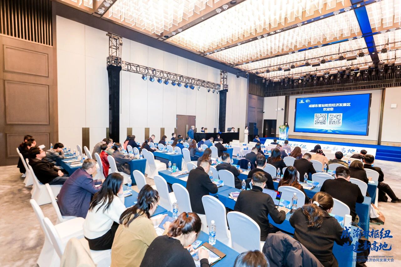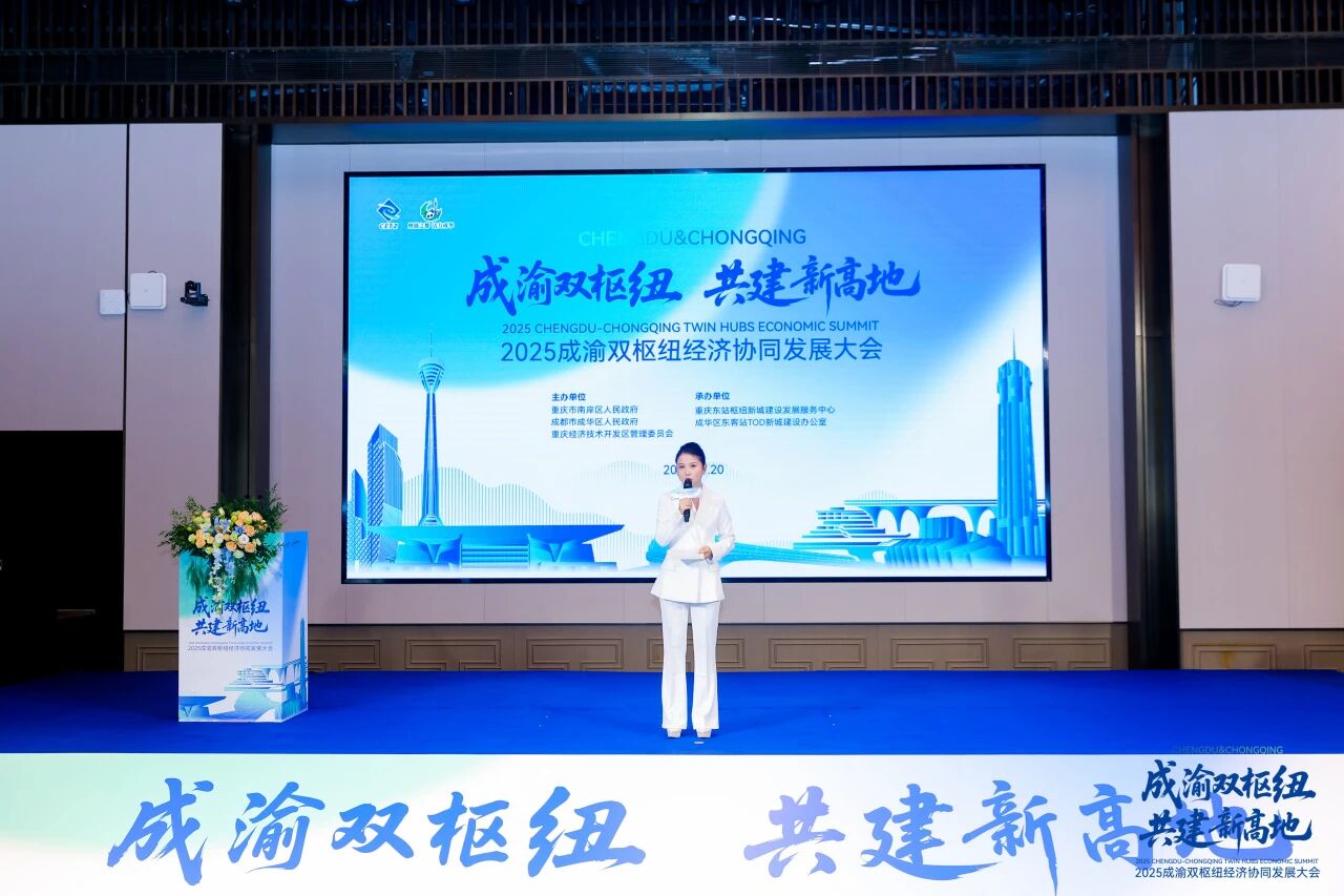 大会在展现双城魅力的宣传片中拉开序幕,与会嘉宾围绕枢纽经济与区域协同展开深度对话。城市经济研究专家现场解析成渝双城枢纽经济的发展路径,为区域合作提供理论支持。在重点项目推介环节,成都东客站枢纽经济发展区与重庆东站枢纽新城核心区分别展示了发展规划与投资机遇,凸显双枢纽在资源整合与产业升级中的重要作用。