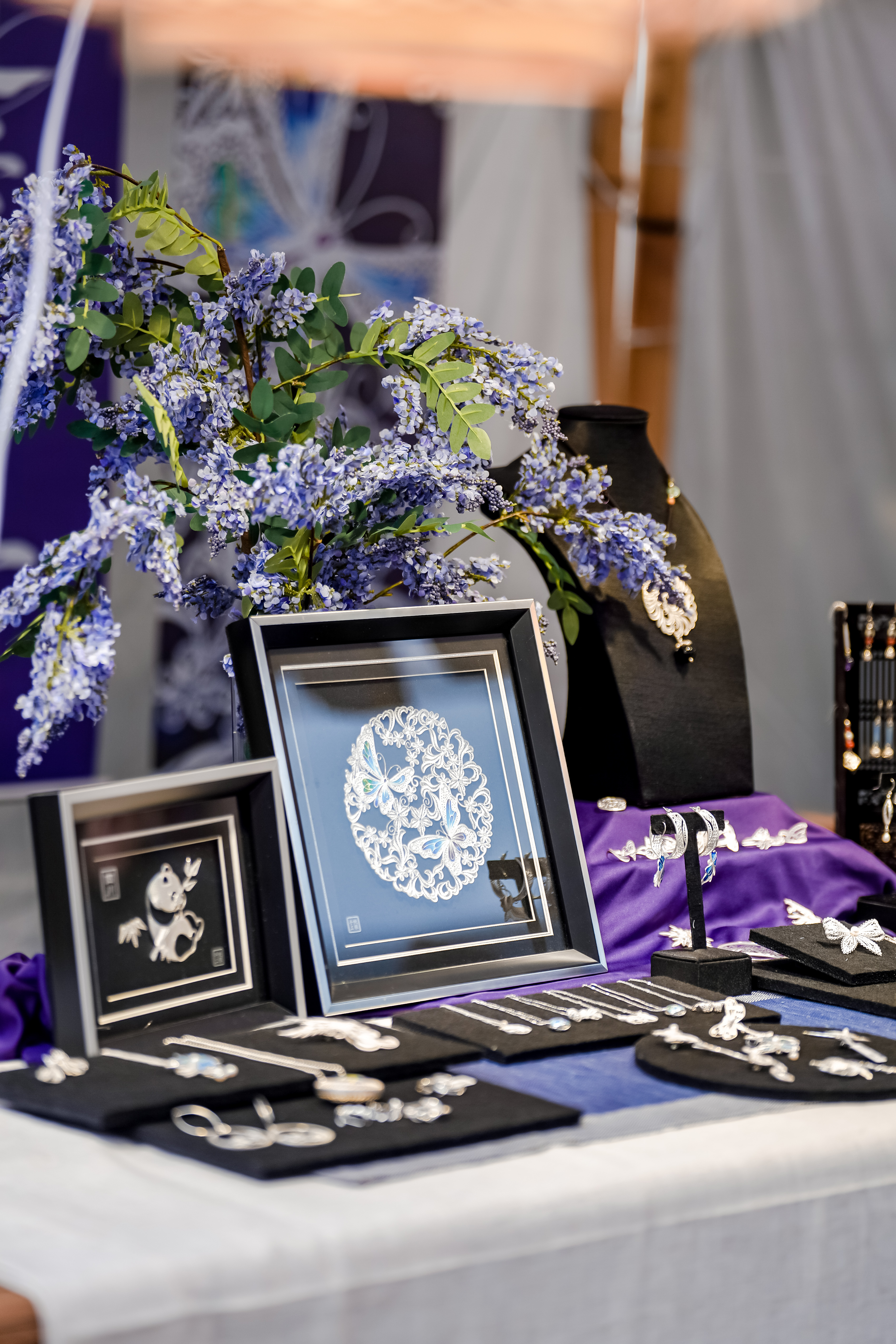初来艺术市集,市集的负责人发现她的点位不太被关注,于是帮助她调整展品陈列位置,还建议她更换灯光……经过一段时间的共同调整,前来购买银花丝的游客逐渐增多,本地人、外地人乃至外国人都通过这个小小摊位认识了这项传统技艺。
