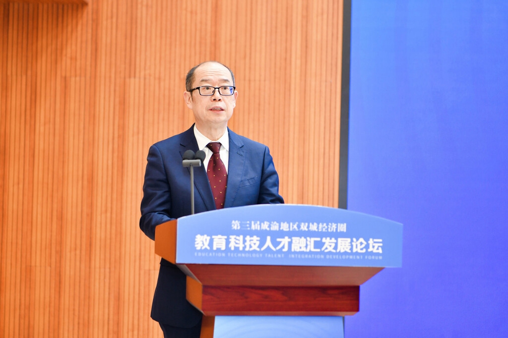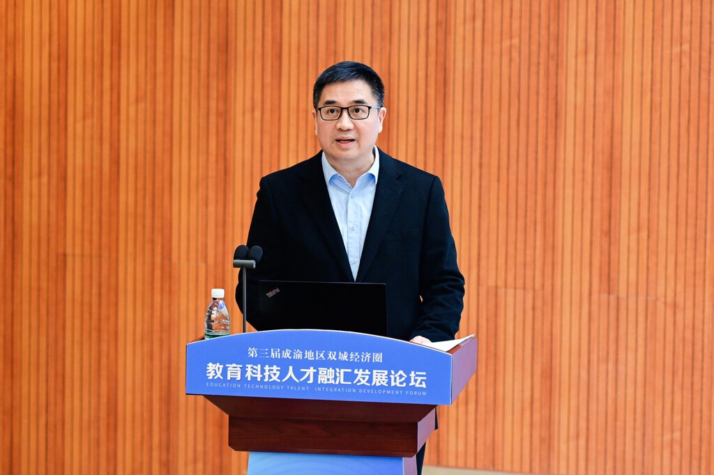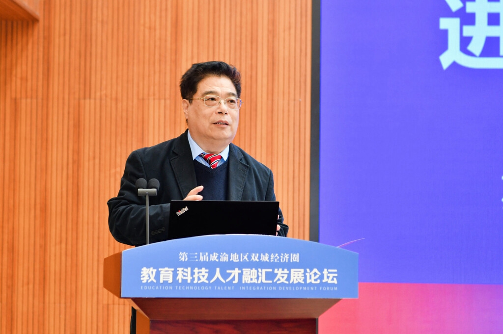 中国工程院院士、西南电子电信技术研究所研究员、博士生导师陈鲸作《数字赋能 融合创新:科技大平台推动教育科技人才一体化发展》报告,他指出,数字技术和数据要素驱动,是实现教育科技人才深度融合和高效循环的关键路径,他建议成渝两地从夯实数字底座、破除物理与行政隔阂,聚焦战略领域、打造高能级平台集群等层面进行发力。