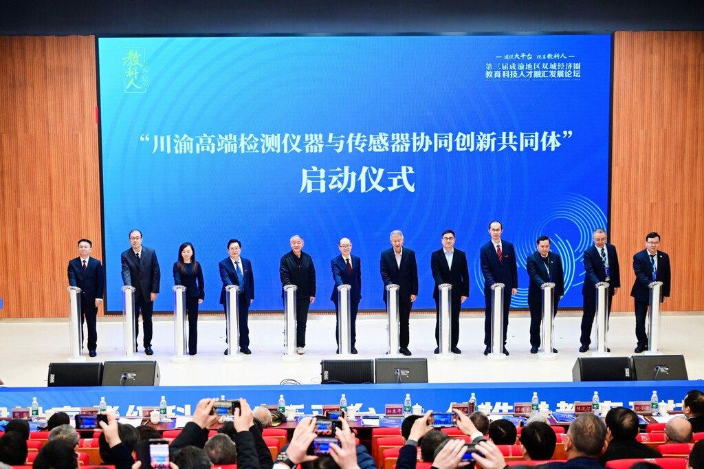 中国工程科技发展战略四川研究院副秘书长、四川省工程科技发展战略研究院副院长赵源主持“川渝高端检测仪器与传感器协同创新共同体”启动仪式。该共同体由重庆理工大学联合中国测试技术研究院、广电计量检测集团股份有限公司、重庆市计量质量检测研究院、重庆川仪自动化股份有限公司、中国长安汽车集团有限公司、赛力斯集团股份有限公司等单位联合发起,构建“基础研究—技术开发—工程应用—产业孵化”的全链条创新体系。