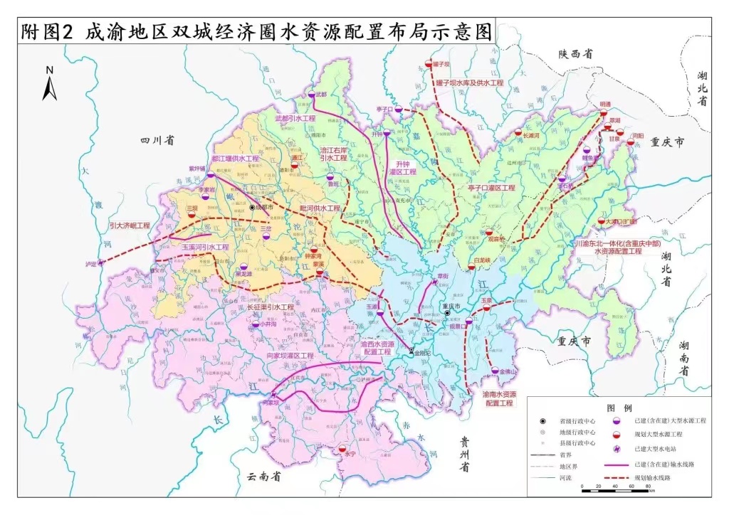 成渝地区水资源配置布局示意图。重庆市水利局供图