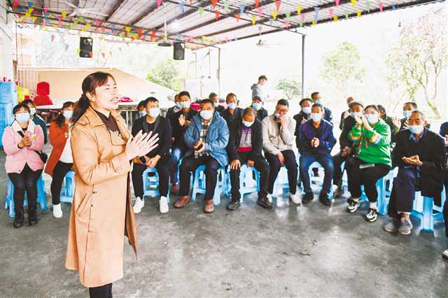 10月27日,万盛经开区万东镇五和村一处院坝内,40余张板凳坐满了前来开会的村民,正在聆听党的二十大代表,五和村党总支书记、村委会主任周冬勤传达党的二十大精神,分享学习心得。