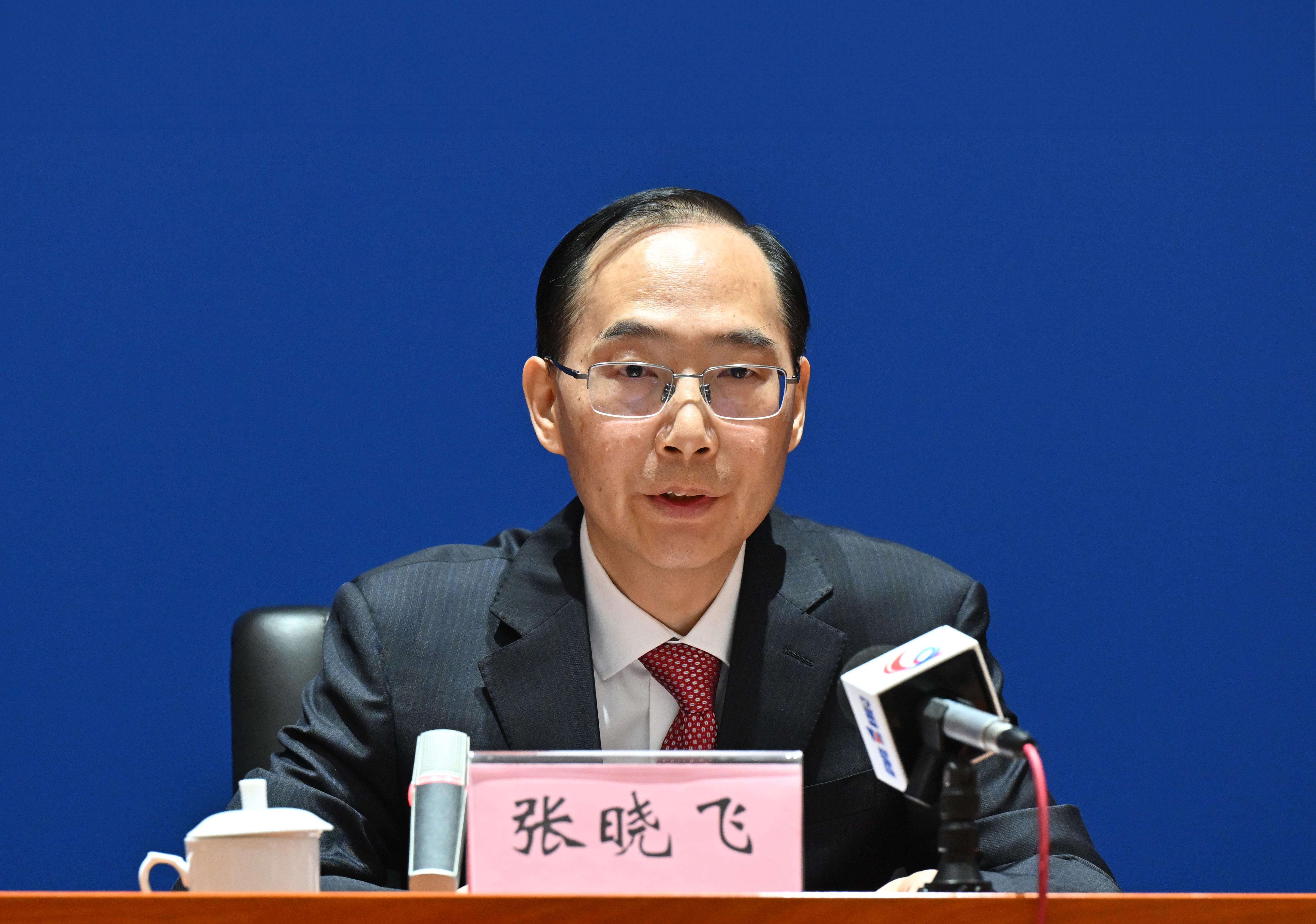 2026年1月23日,重庆市政协六届四次会议新闻发布会现场,张晓飞发言。记者 刘力 摄