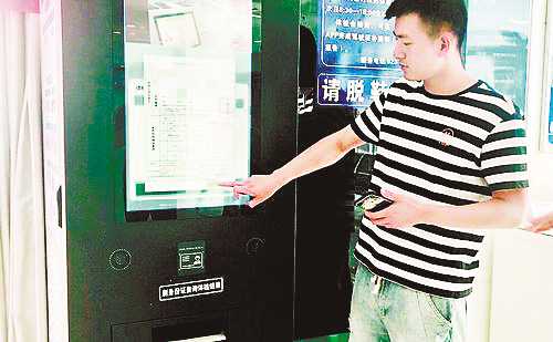 驾驶员在自助体检机上打印体检报告。(重庆晨报供图)