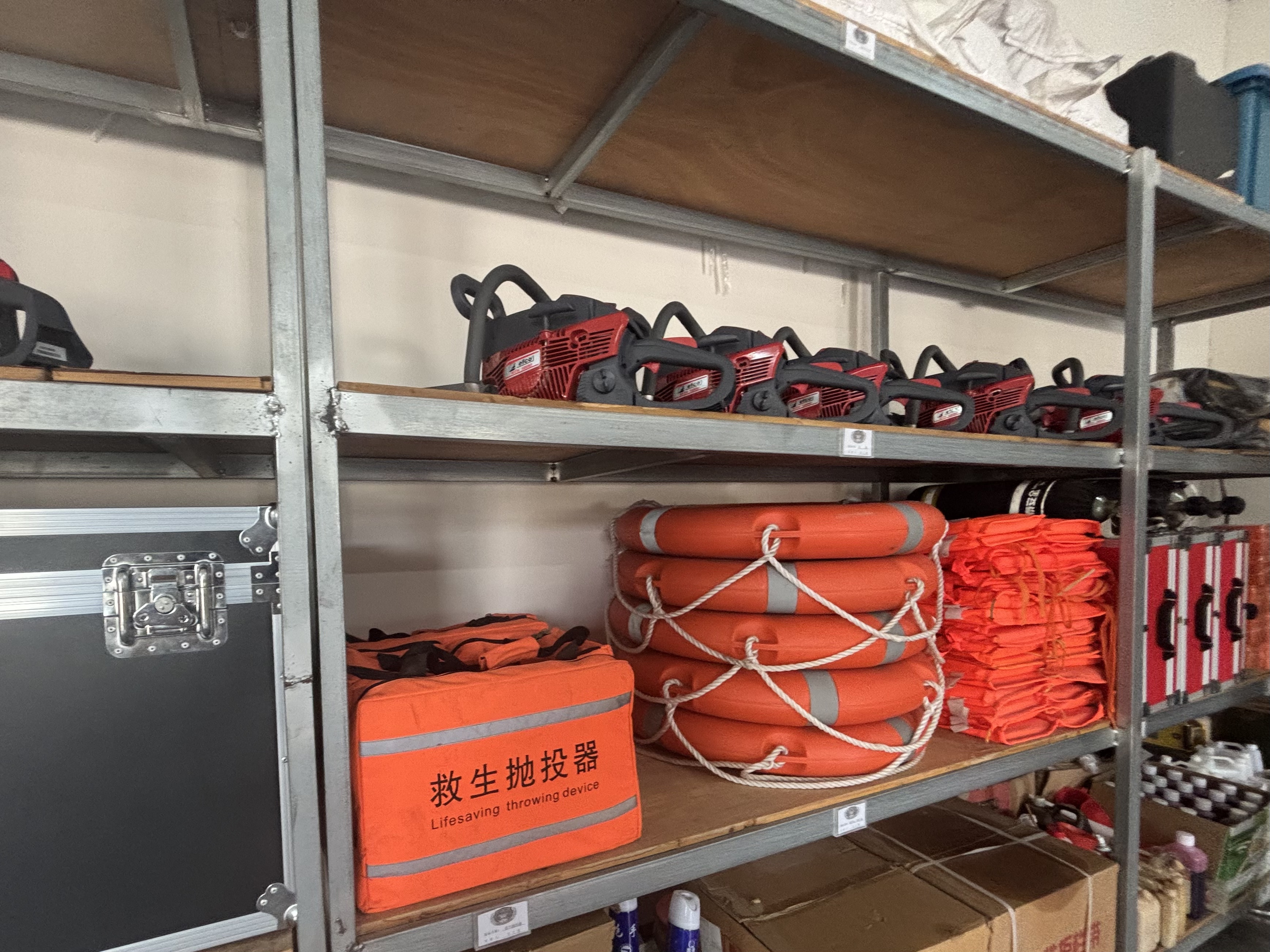 在两江新区玉峰山镇专业应急救援大队,各类应急救援物资整齐摆放。记者 朱婷 摄