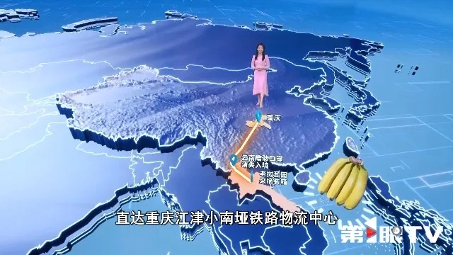 重庆不沿边不靠海,靠什么集散八方、货畅其流?打开世界地图,这里是东南亚的老挝。老挝的香蕉以“外观鲜亮、口感极佳”闻名全球。把它从原产地送到重庆,总共分几步?以去年2月的一批货为例,我们来查查它的物流轨迹。2月16号,货物从蕉园采摘装箱,17号凌晨完成装车发出,17号晚上在云南磨憨口岸完成清关入境,20号晚上直达重庆江津小南垭铁路物流中心。4天时间、保鲜到家,怎么做到的呢?