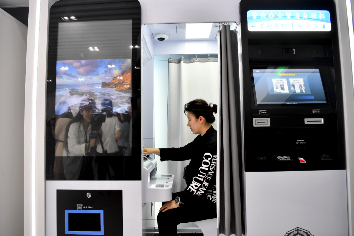 一位市民在24小时智慧政务服务中心自助服务区办理业务。 记者 周邦静 摄