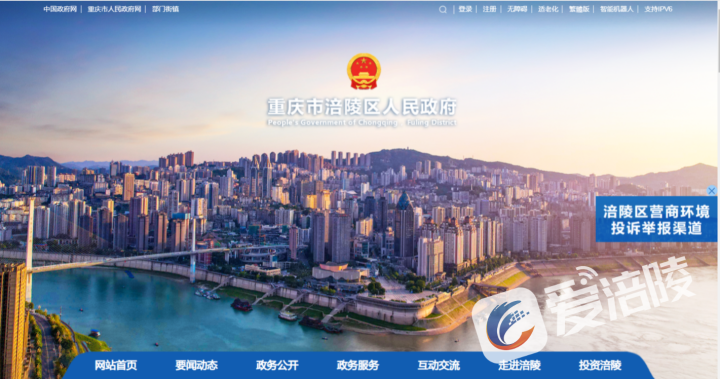 投诉举报相关渠道。重庆市涪陵区人民政府官网截图