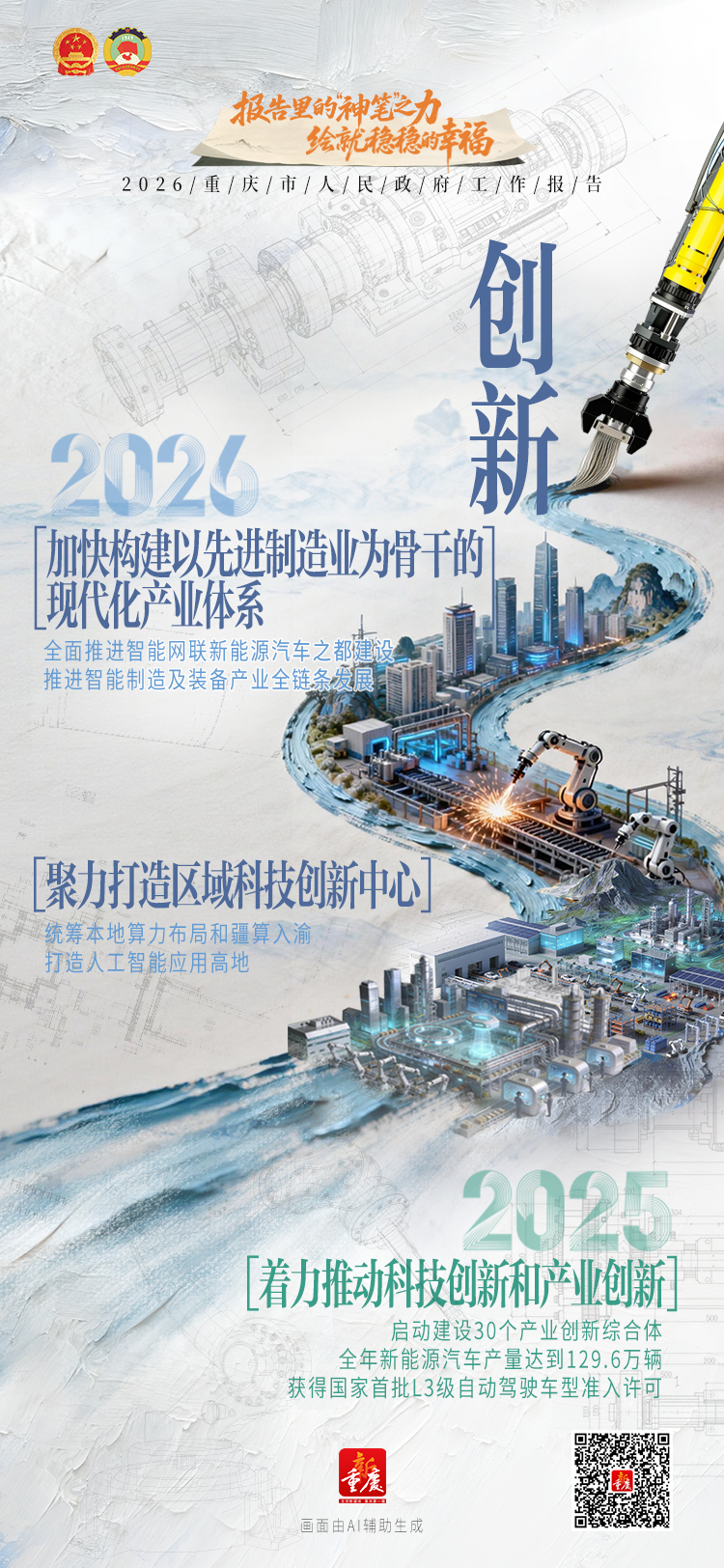 “神笔”绘巴渝,报告见幸福。让我们跟随灵动笔触,看2026重庆市政府工作报告中重庆澎湃向上的活力,感受“稳稳的幸福”!