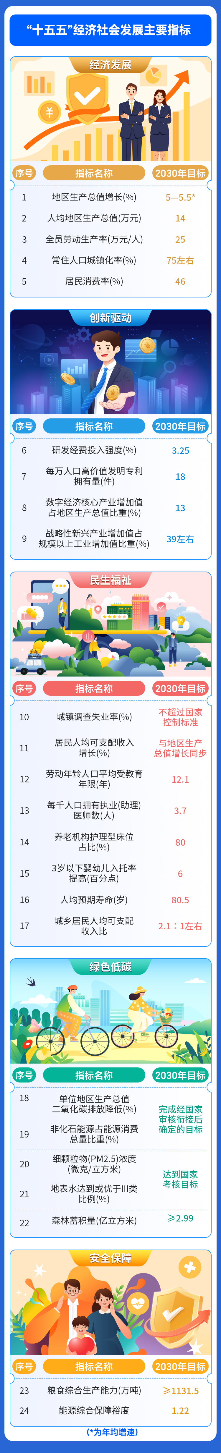 发布会上,市发展改革委负责人介绍,《纲要》共16篇60章182节,锚定“到2030年确保基本实现社会主义现代化取得决定性进展”目标,从经济发展、创新驱动、民生福祉、绿色低碳、安全保障等5个维度提出24项主要指标。