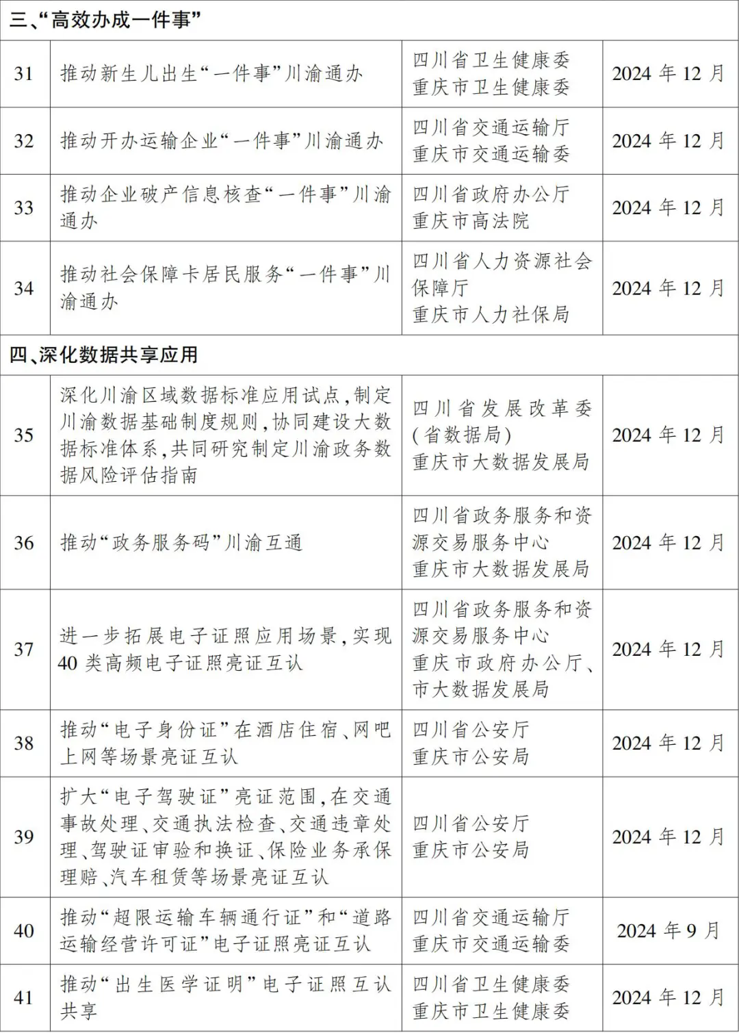 4月8日,四川省人民政府办公厅、重庆市人民政府办公厅联合印发了《深化川渝政务服务合作2024年重点工作任务清单》,其中提到,推动“政务服务码”川渝互通、扩大“电子驾驶证”亮证范围等重点工作任务,一起来看详细清单。