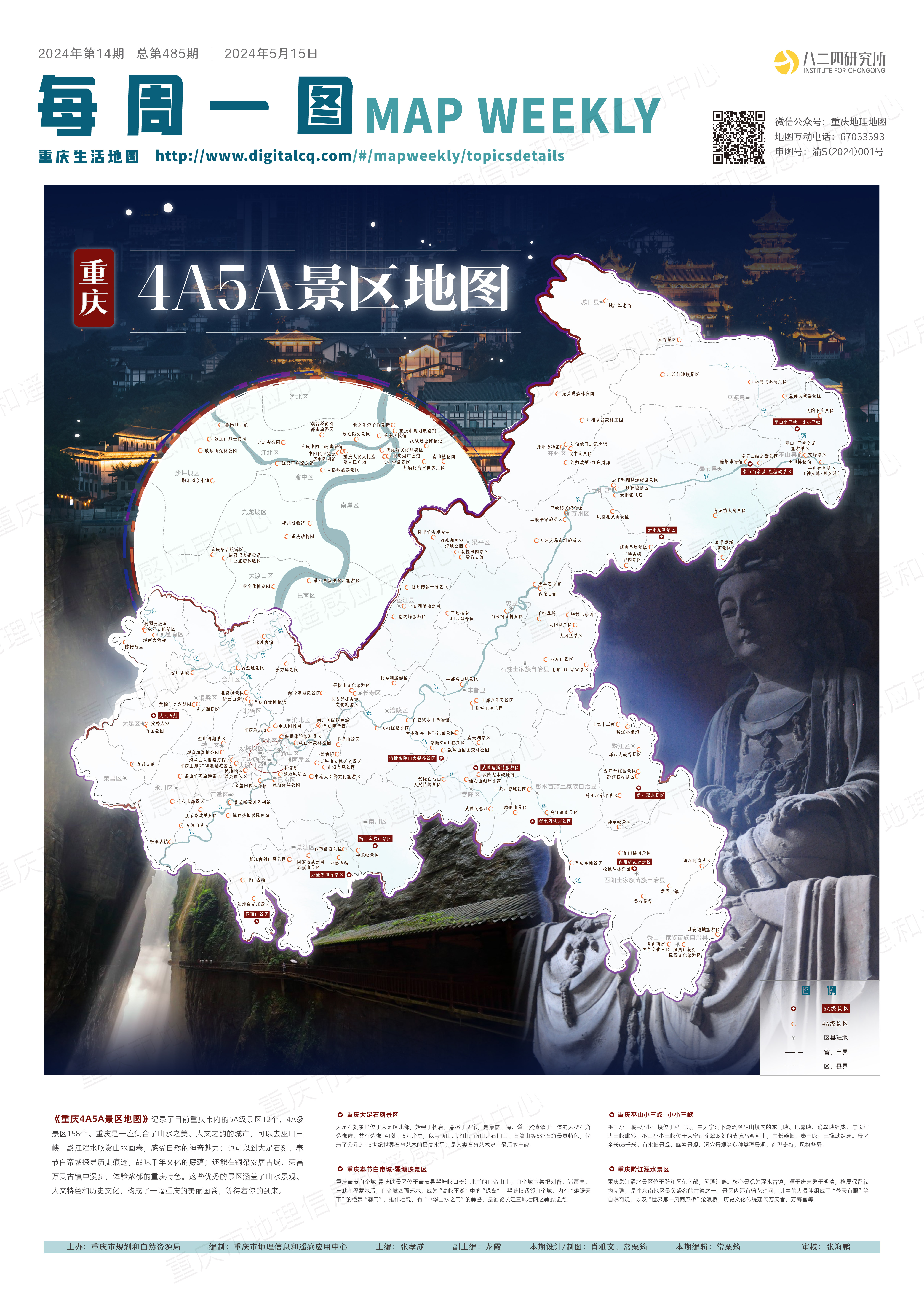 5月17日,记者从重庆市地理信息和遥感应用中心获悉,在5·19中国旅游日即将到来之际,该中心制作了《重庆4A5A景区地图》,重庆市内目前12个5A级景区以及158个4A级景区均在其中。
