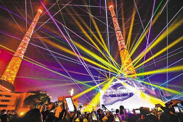 12月29日晚,九龙坡重庆美术公园,中国·重庆第二届国际光影艺术节暨2024年重庆市中心城区迎春灯饰启动仪式举行。图为活动现场炫酷的光影秀。记者 齐岚森 见习记者 李雨恒 摄/视觉重庆