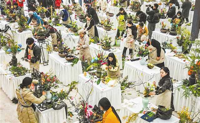12月29日,北碚区静观镇,市民正在参加传统插花大赛。首席记者 龙帆 见习记者 魏瑞 摄/视觉重庆