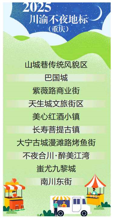 9月23日,记者从市商务委获悉,首届“不夜川渝 活力中国”2025川渝城市夜经济嘉年华活动评选出“2025川渝不夜地标”“2025川渝夜经济新业态示范案例”。其中,重庆山城巷传统风貌区、巴国城等10个项目,凭借独特的夜间消费场景与文化创新力,获评“2025川渝不夜地标”。