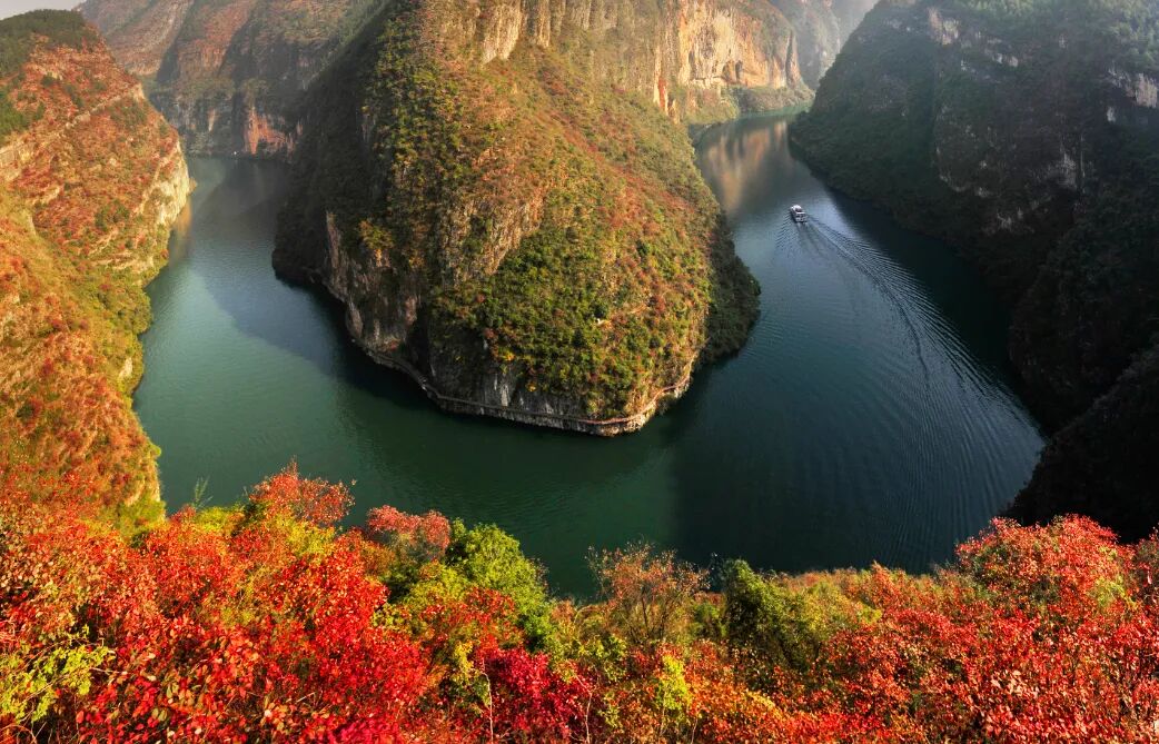 这里的红叶红在漫山遍野、层林尽染,美在云、江、山、叶的完美融合,高峡平湖与遍山红叶交相辉映,好在生态和谐、万物共生。