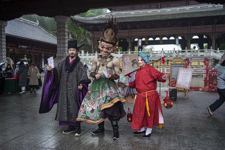 元旦假日,大足石刻景区内人潮涌动,大足石刻宝顶集市盛大开市。此次集市创新融合宋代市井烟火气与千年大足石刻文化,为游客呈上一场别具一格的新春游览盛宴。
