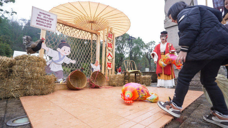 据了解,大足石刻宝顶集市以“赚取交子”为核心游玩主线,在宝顶山景区多个区域设置30余种互动游戏。拔剑测力处游客摩拳擦掌,大力锤挑战区大家鼓足力气,投壶射箭场地人们专注瞄准,赶鸡入笼游戏充满田园趣味,抄经拓印区域静谧祥和,学点茶、对诗环节激发文化热情,杂耍表演更是引得阵阵喝彩。游客参与游戏可获得相应数量的交子,并在指定地点兑换礼品,增添游玩乐趣与成就感。