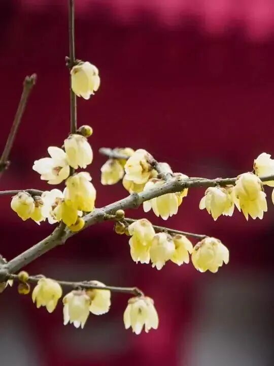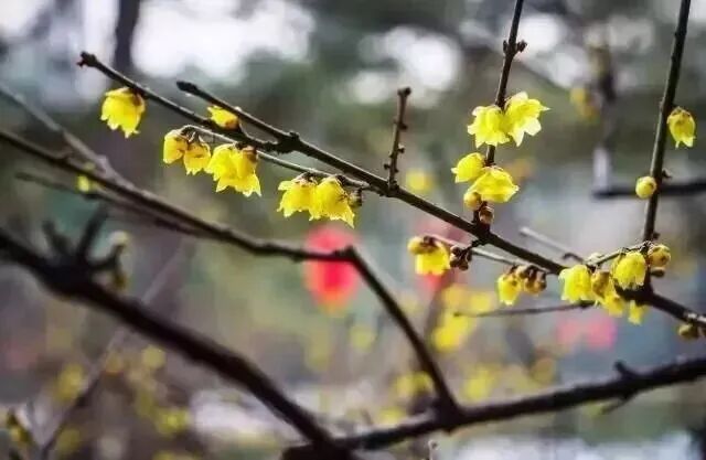 鸿恩寺的蜡梅,多了几分人文气息,公园的红墙成了最佳背景,映衬着蜡梅那近乎透明的黄。
