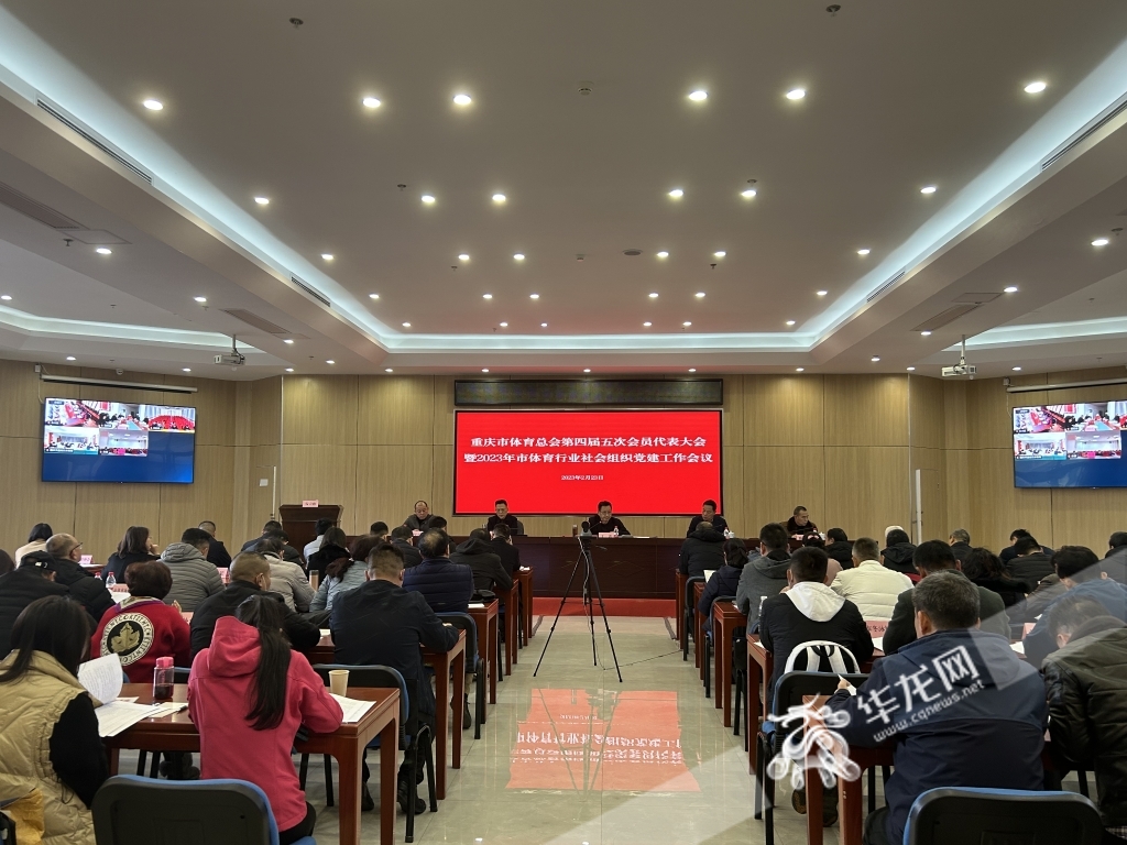 重庆市体育总会第四届五次会员代表大会暨 2023 年市体育行业社会组织党建工作会召开。华龙网-新重庆客户端记者 邱小雅 摄