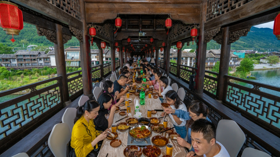 此次美食活动集“美食体验+限时挑战+民俗感受”于一体,将在黔江、武隆、彭水及酉阳等地陆续开展,活动举办地主要集中在阿依河景区、九黎城景区、龚滩景区以及濯水景区。活动期间,主办方将组织游客现场体验黔江特色鸡杂、彭水苗家长桌宴、武隆蒸笼宴等地道美食,并以彭水苗乡长桌宴作为重点打造环节,挑选汇聚武陵山区域特色美食蕨粑腊肉、绿豆粉等,为市民游客献上一份美食大餐。