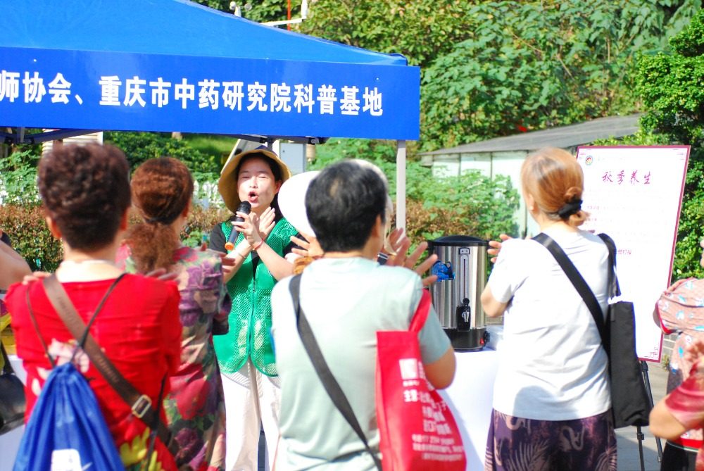 科技志愿者带领大家识别中药材,了解其效用。本文图片均由南岸区花园路街道提供