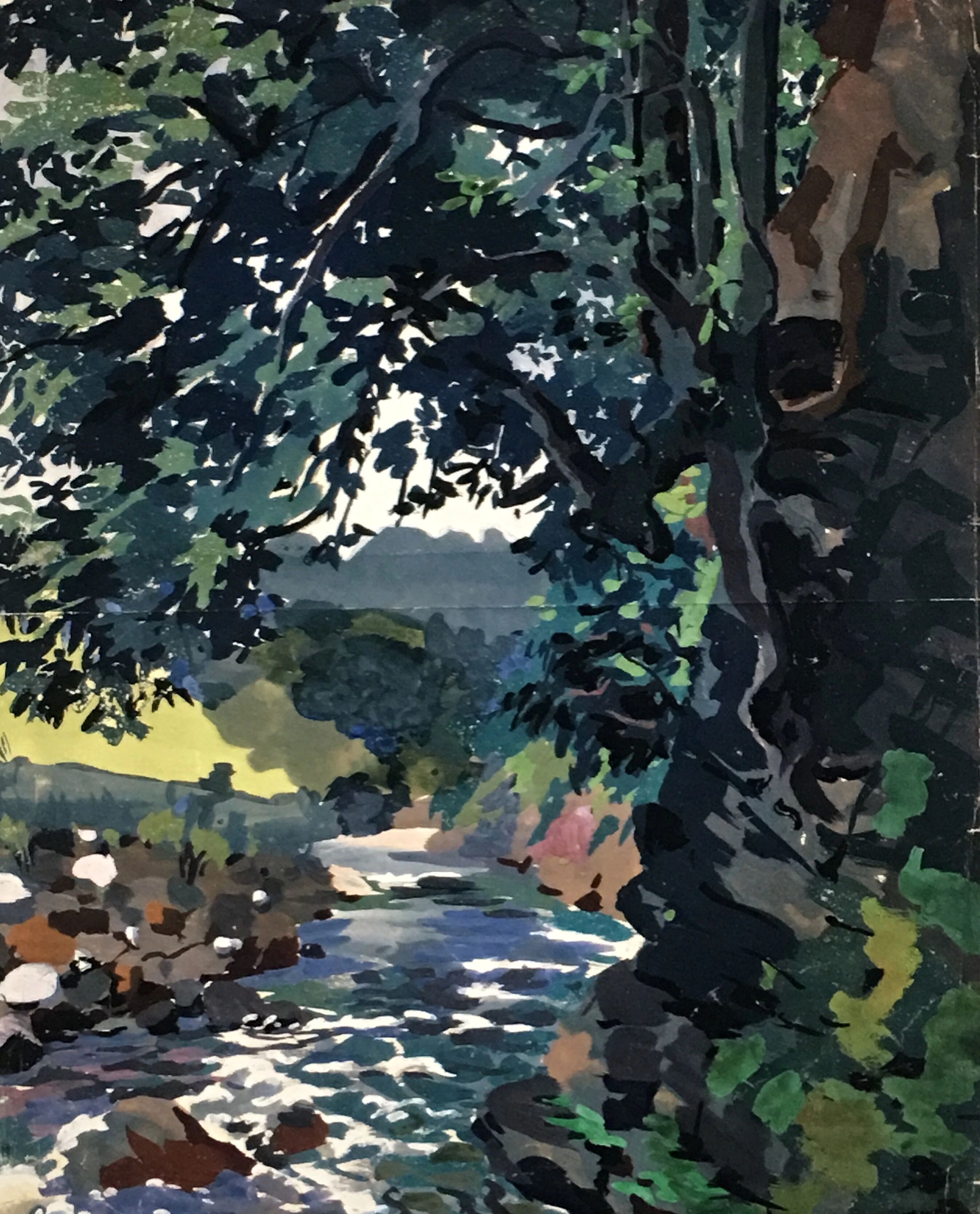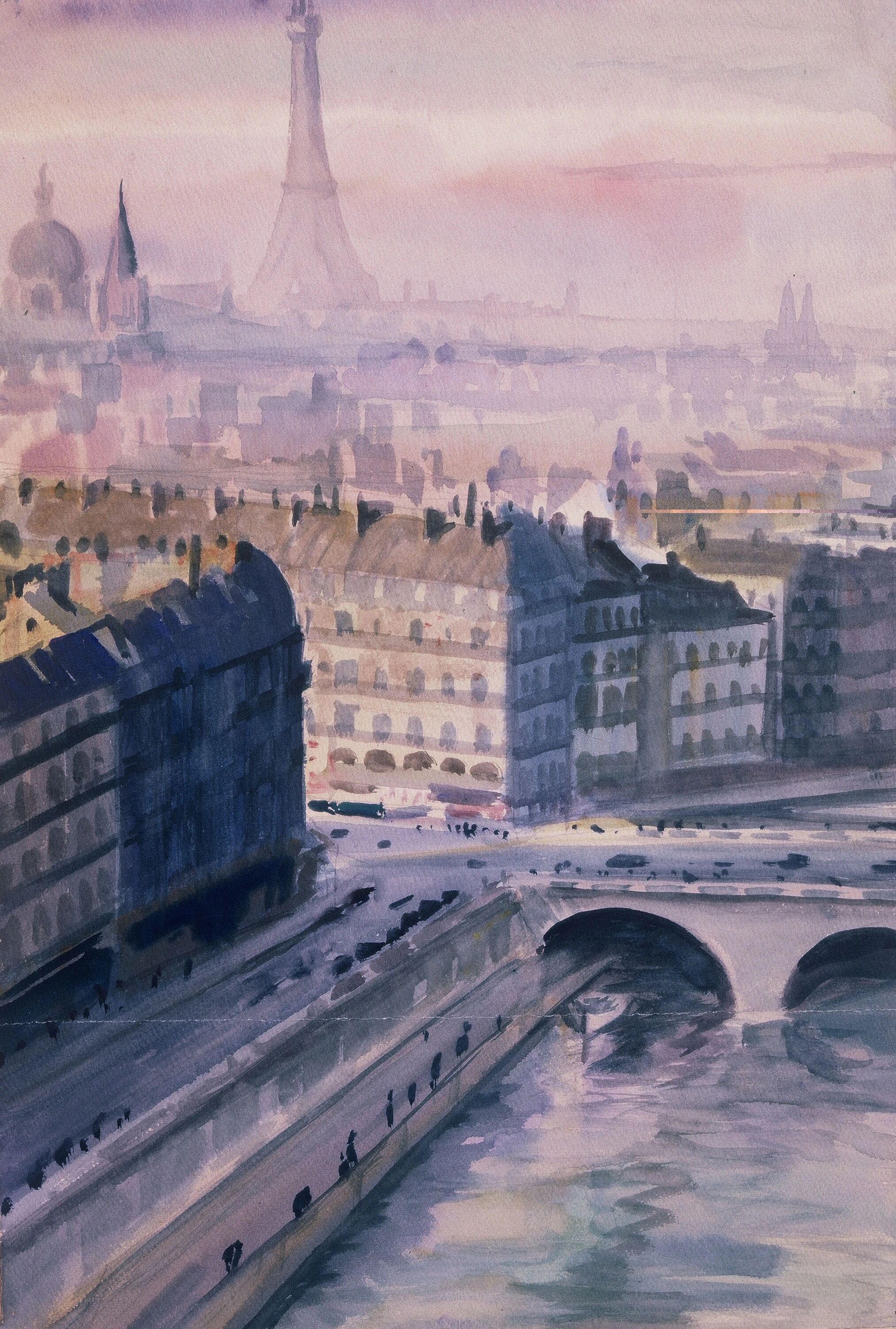 李有行《塞纳河畔》纸本·水性材料