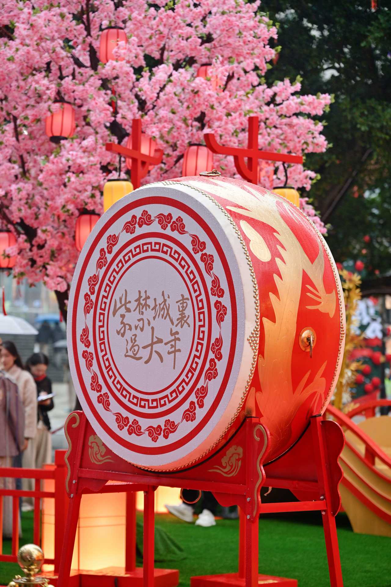 “紫禁城里过大年”源于2019年的故宫博物院同名展览。如今,这一文化IP走出博物院高墙,以数字化、场景化的形式在全国各地落地生根。首次来渝,除了解放碑主会场的沉浸式体验外,它还在观音桥、杨家坪、三峡广场等核心商圈打造了各具主题、彼此呼应的“宫廷风”系列美陈打卡装置,形成“一城多景、宫韵满渝”的文化景观,让市民在日常出行中便能邂逅新春惊喜。