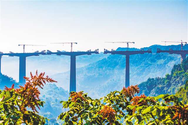 9月17日,南川区石溪镇,建设中的渝湘高速复线龙川江特大桥如同一条巨龙,矗立在峡谷间。