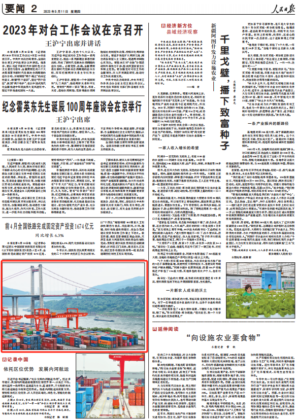 5月11日,人民日报发布图片新闻报道关注果园港发挥区位优势,助力内河航运高质量发展。