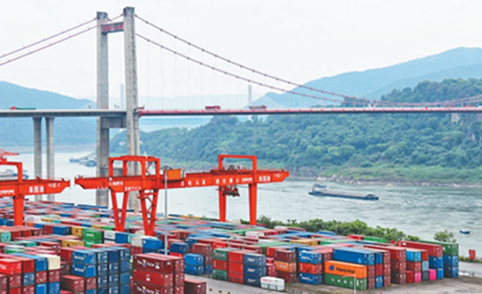 5月10日,重庆两江新区果园港,公路、水运等多通道运输在此交汇,这个“一带一路”和长江经济带联结点呈现繁忙景象。本报记者 姜峰 摄