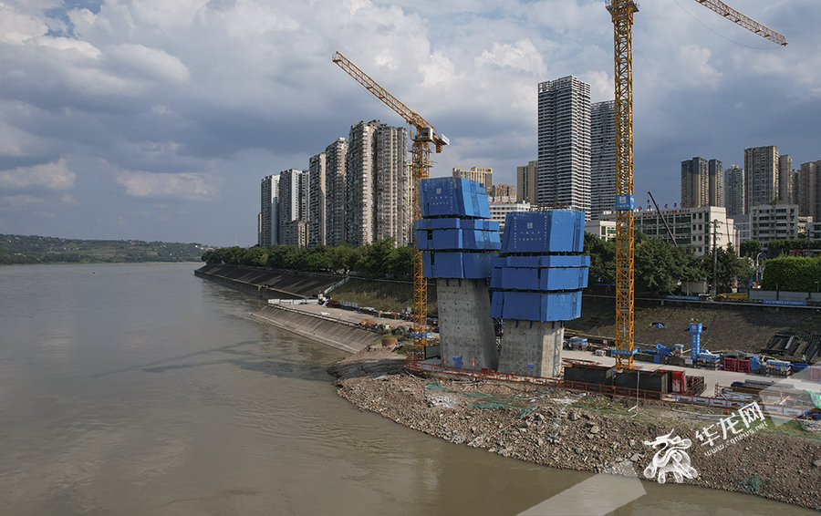 项目北岸高架下部结构完成,正在进行上部结构支架施工。华龙网首席记者 李文科 摄