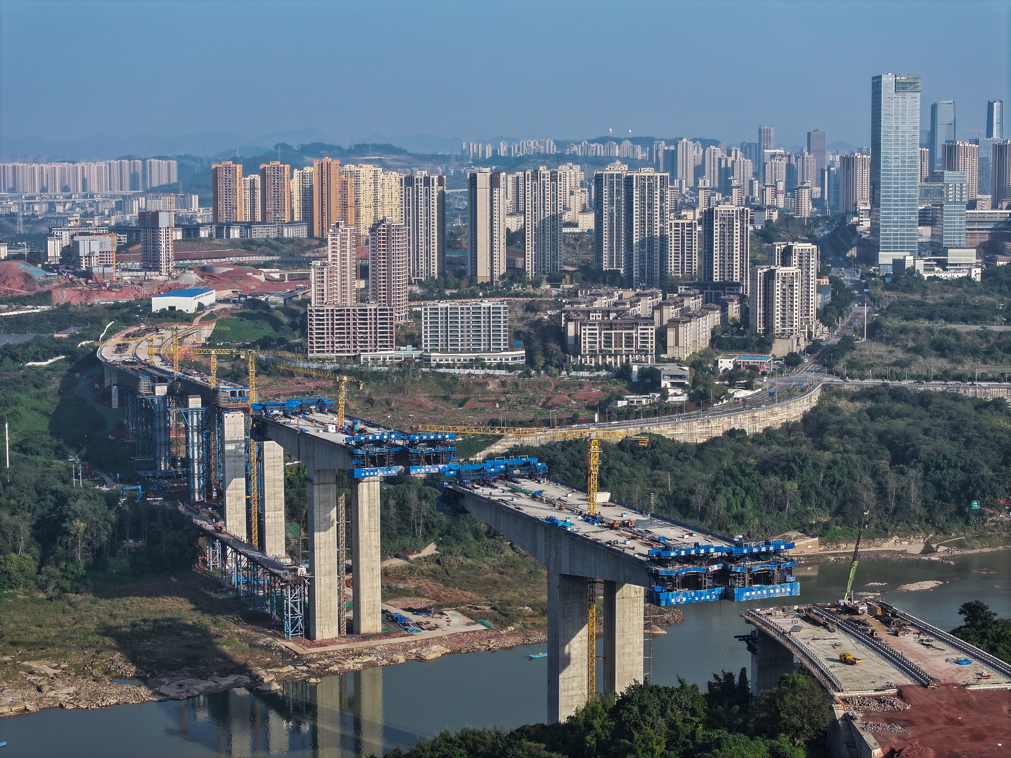 宝山嘉陵江大桥项目是重庆快速路五联络线的重要组成部分,项目西起两江新区蔡家片区石龙村西桥头立交,跨嘉陵江,东至悦来片区椿萱立交。大桥预计2027年建成,届时将直接串联服务蔡家组团和悦来组团,极大改善目前交通环境。